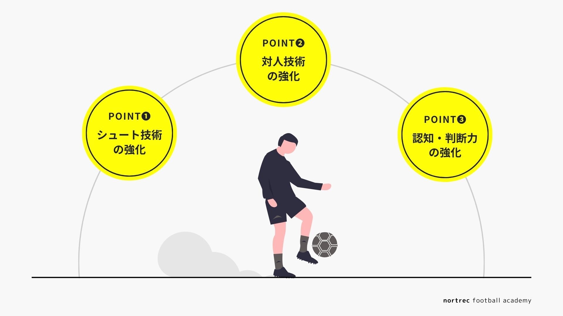 ストライカークラスでは、相手ゴール前でのプレー改善(得点力アップ)のために、
